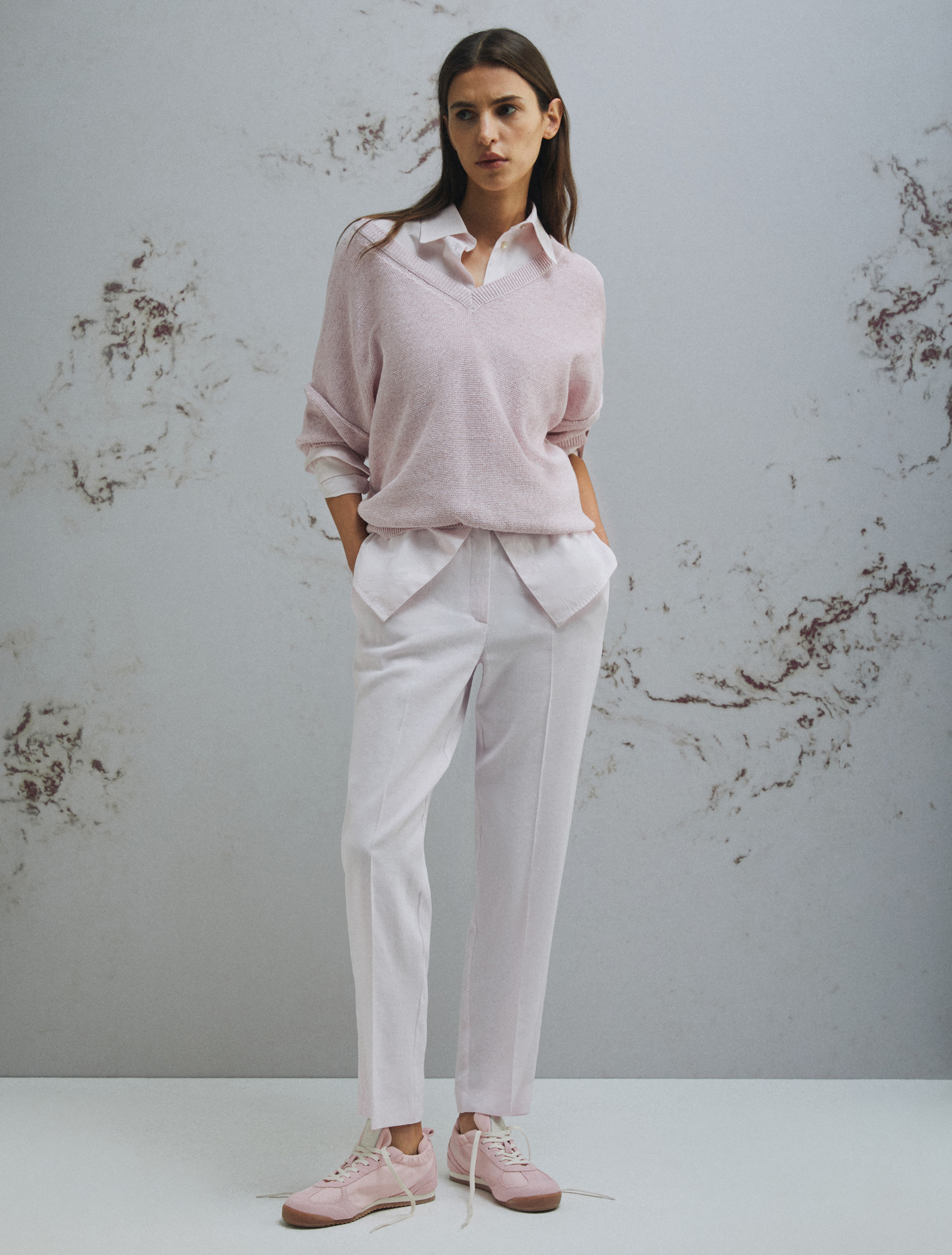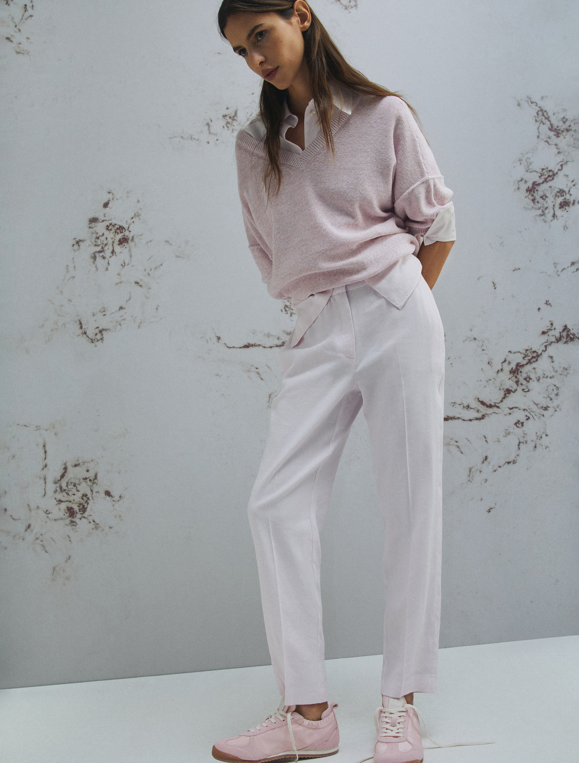 Stretch viscose and linen trousers - PINK